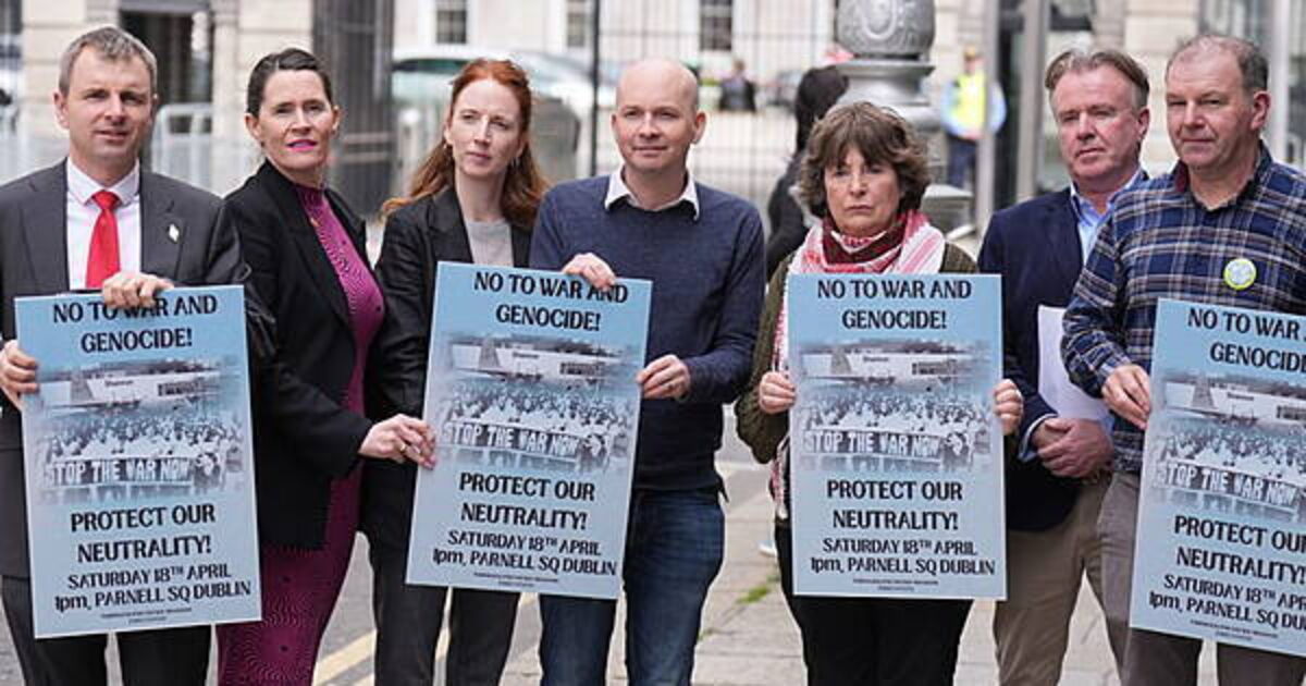 Arranged by the Irish Neutrality League, the protest is supported by left-wing opposition parties, a number of unions and anti-war groups.