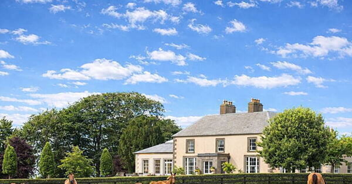 Set on around 24 acres, the home includes stables and outbuildings, making it suitable for small-scale equestrian or farming use.