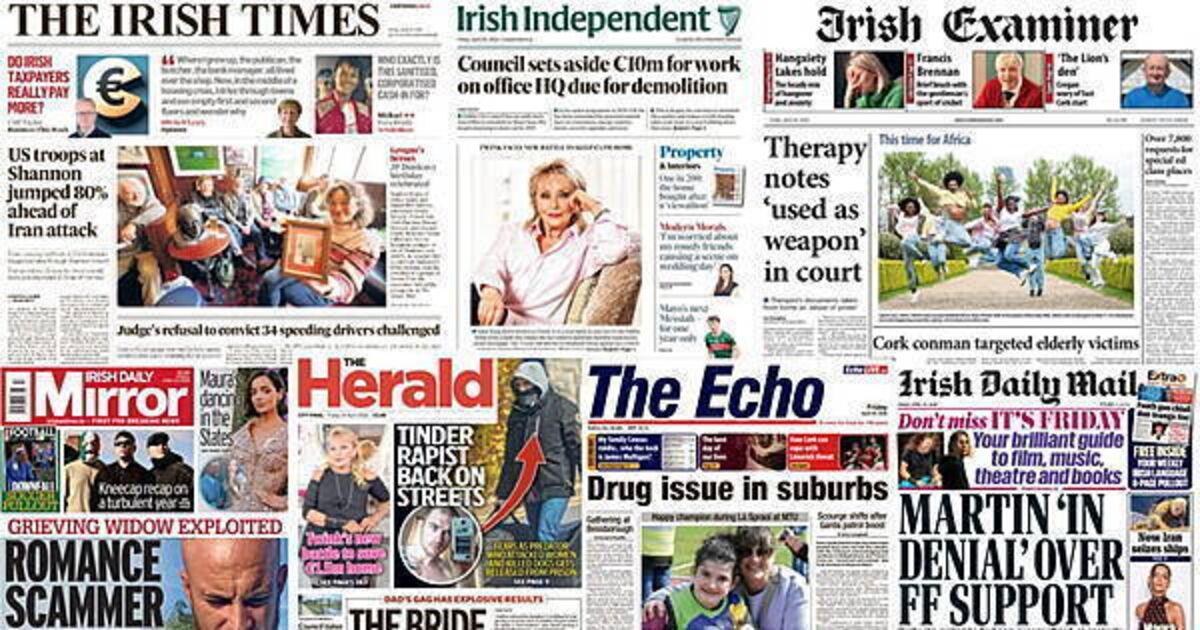 The Irish Times lead with US troops travelling through Shannon jumping 80 per cent before and during the US attacks on Iran, a judge's refusal to convict 34 speeding drivers being challenged,  and the number of people working past the age of 65 rising by 31 per cent in three years.