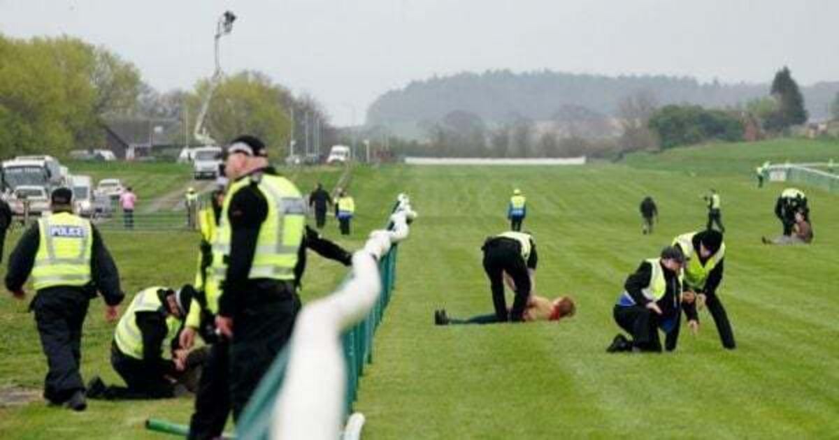 Animal rights protesters stormed the track at Ayr Racecourse in Scotland in a bid to stop the Scottish Grand National.