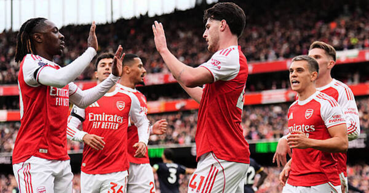 At the Emirates, Arsenal are 1-0 up on West Ham after Declan Rice scored.