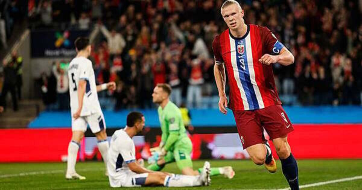 Haaland, winning his 46th cap, scored his 50th goal for his country when he nodded in Antonio Nusa’s cross and the pair combined again as the in-form forward grabbed his third of the night.