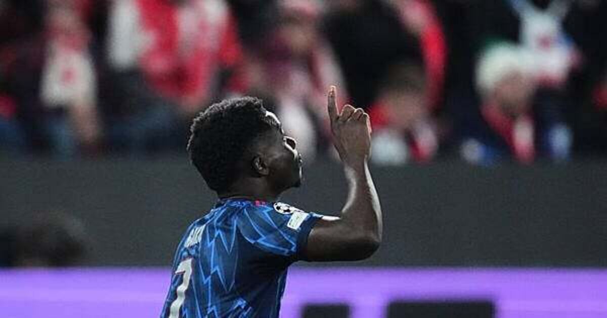 Saka drilled the penalty home in the 32nd minute, his fifth goal of the season in all competitions and second in this season’s Champions League.
