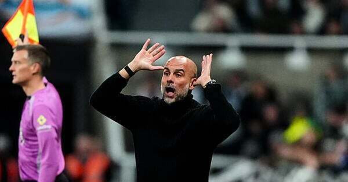 Guardiola, who was pictured grabbing the camera operator’s headset, had been riled by the decision to award Harvey Barnes’ winning goal in the 70th minute at St James’ Park.