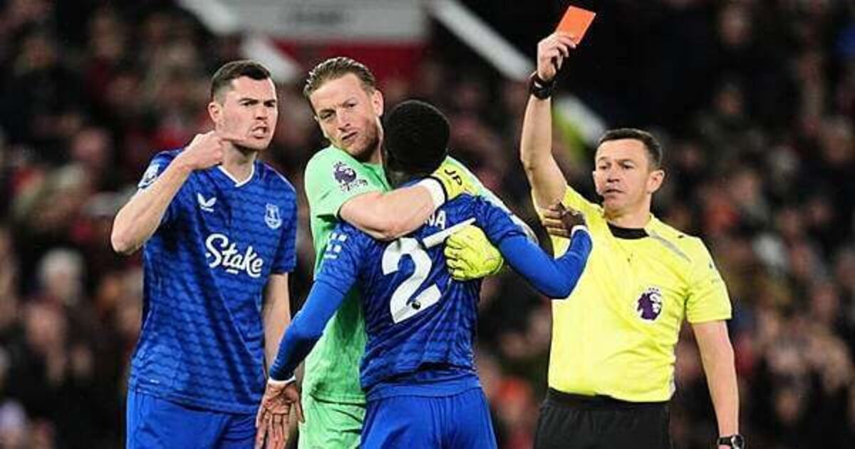 Referee Tony Harrington brandished a red card, and Pickford had to wrestle Gueye away from a bemused and understandably angry Keane.
