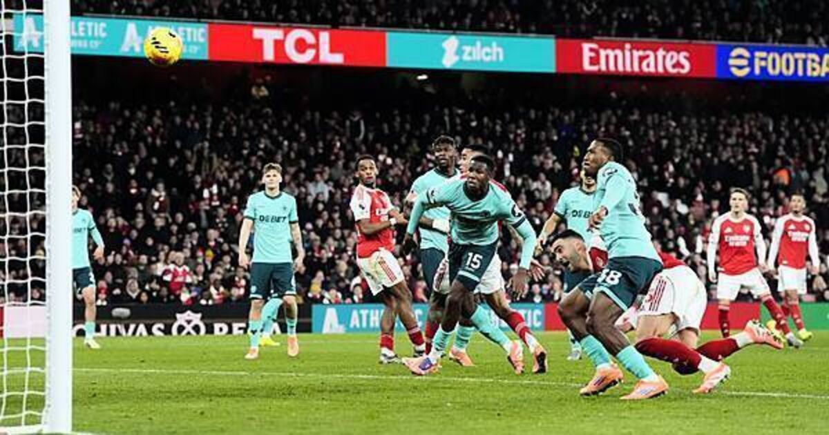 But a fortuitous Arsenal regained the lead in the fourth minute of added time when Yerson Mosquera, under pressure from substitute Gabriel Jesus, headed Saka’s cross past a stunned Johnstone.