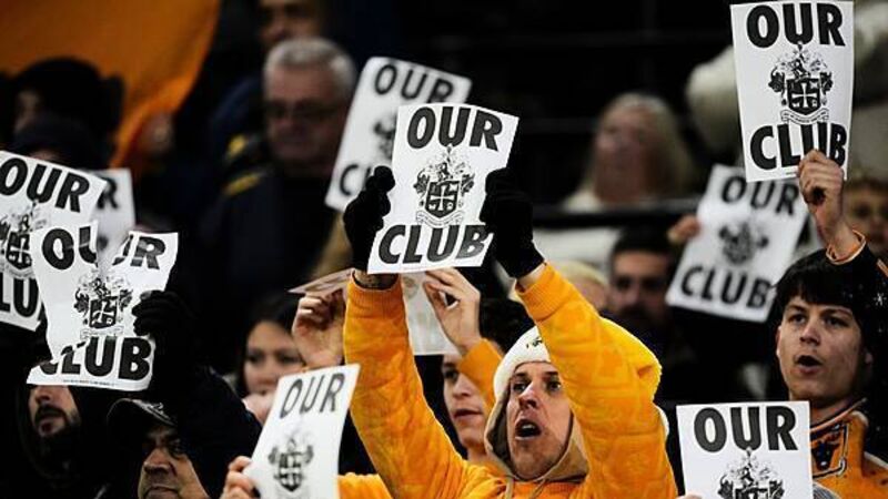Fans held up ‘Our Club’ signs in the 18th minute as they called for owners Fosun to sell the day after under-fire Jeff Shi stepped down as Wolves executive chairman.