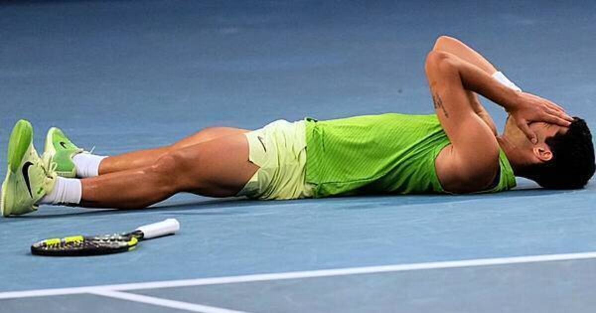 When a final forehand proved too much for Zverev, Alcaraz lay flat on his back and he must now hope he has enough time to fully recover for Sunday’s final.