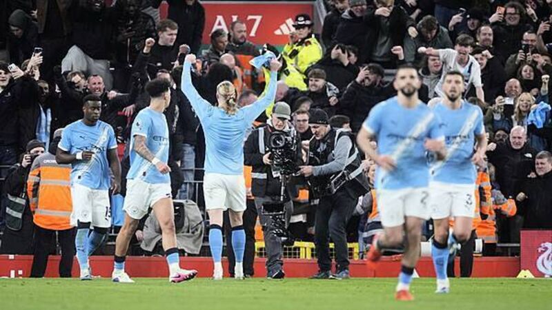 The City striker was then involved in a bizarre finish as he and Dominik Szoboszlai chased Rayan Cherki’s shot from inside his own half with goalkeeper Alisson Becker upfield searching for an equaliser.