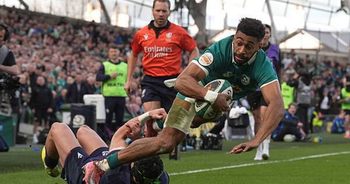 Scotland fly-half Finn Russell and co-captain Rory Darge crossed in the second period, either side of a finish from Ireland replacement Darragh Murray, but hope of a famous comeback was extinguished by Tommy O’Brien’s late double and a Jack Crowley penalty.