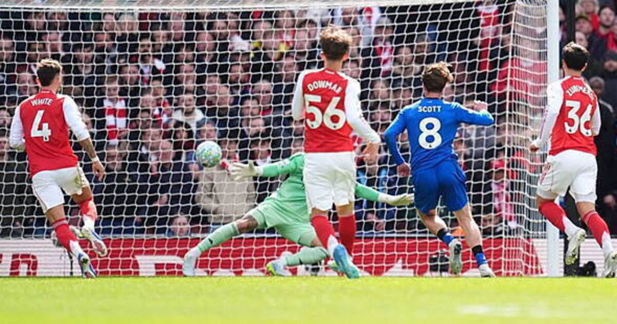 Ryan Christie was allowed the freedom of the Emirates to play an inch-perfect pass to an unmarked Adrien Truffert and the full-back’s slide-rule pass across the box pinged off William Saliba’s right boot, falling perfectly to Kroupi at the far post to cushion his volley home for his ninth goal of the season.