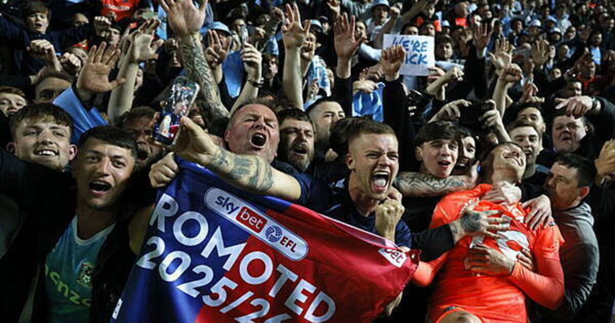 Coventry ended their 25-year exile from the Premier League by securing promotion from the Sky Bet Championship with a 1-1 draw at Blackburn.
