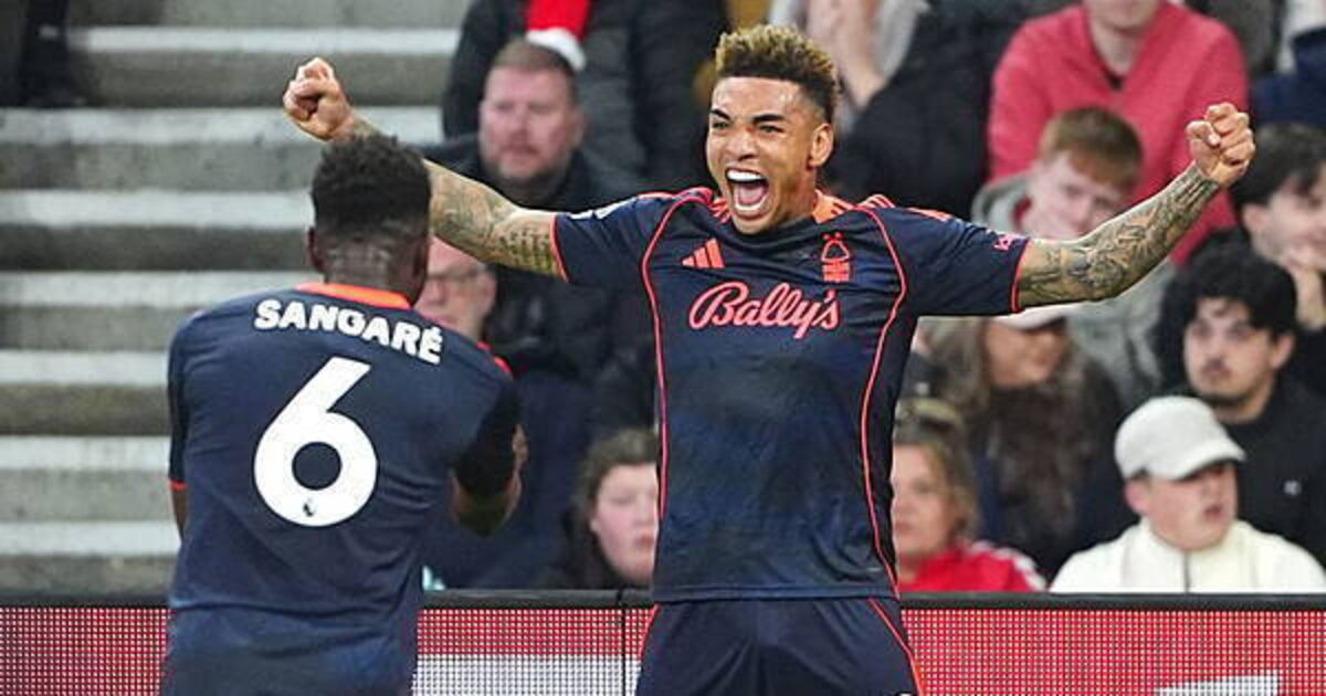 Nottingham Forest’s Morgan Gibbs-White (left) celebrates scoring