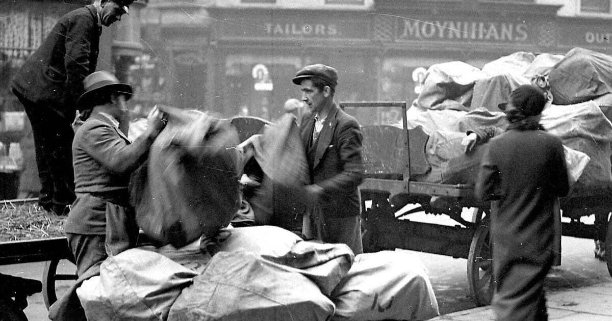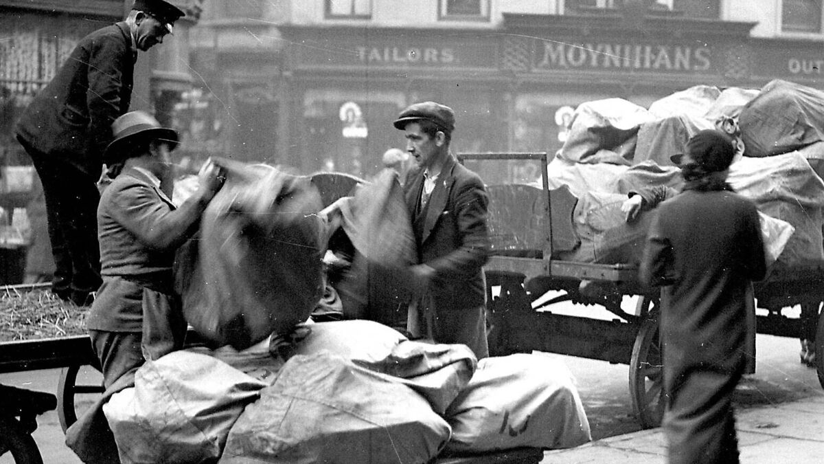 Preparing to deliver the last of the Christmas post at the GPO, Oliver Plunkett Street, Cork, in 1936. Many parcels contained hand-me-down clothes.