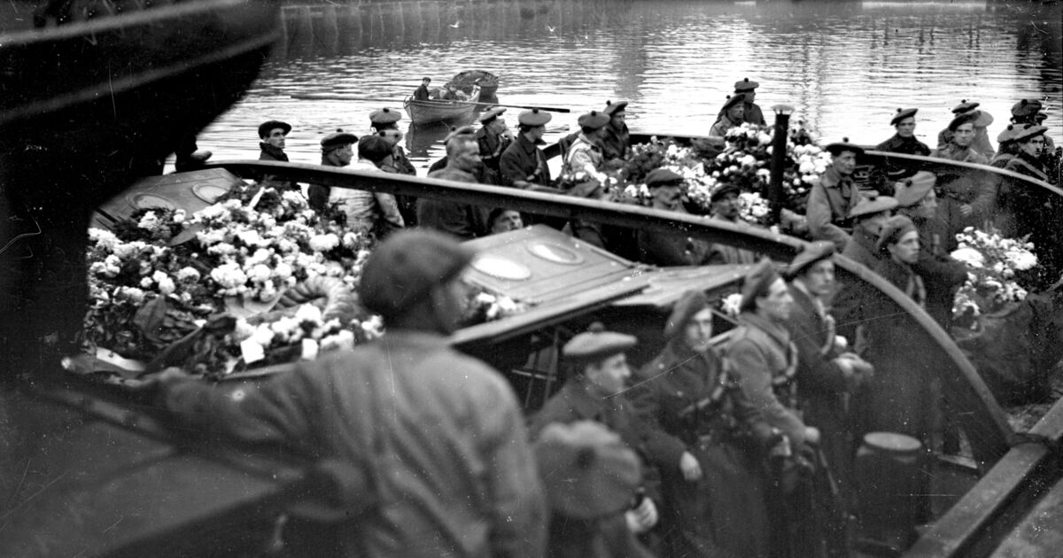 Arrival of the body of Terence McSwiney at Cork on the British admiralty tug 'Mary Tavy' in October1920.