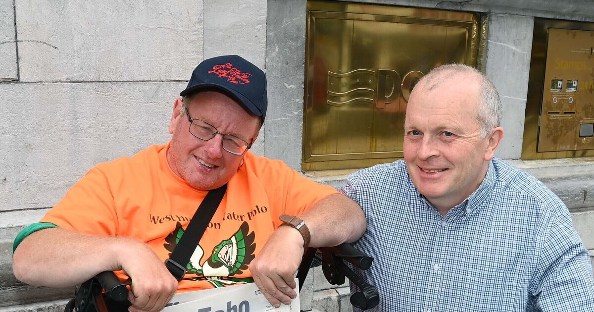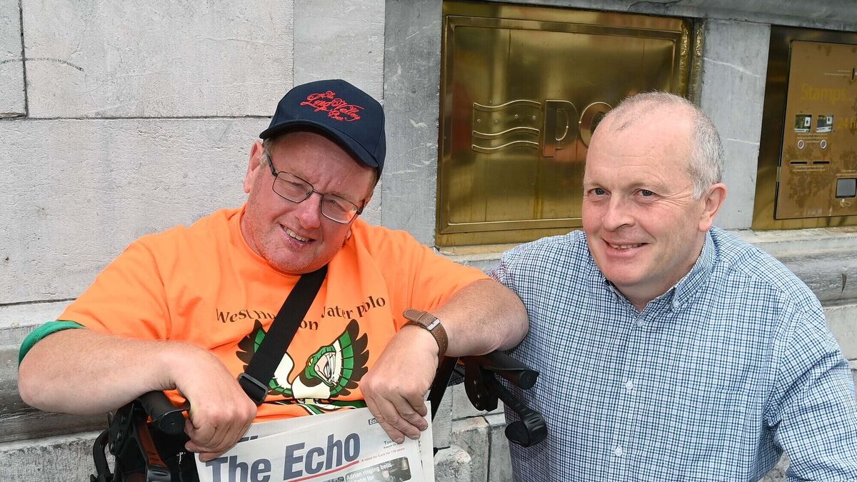 Colm Scully with Dave Hogan at his pitch at the GPO. Picture: Denis Minihane