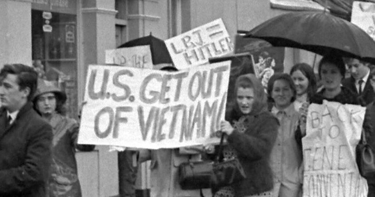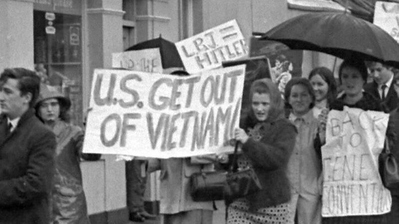UCC students take part in an anti-Vietnam War protest on November 20, 1967 - it was around this time that Johnny Campbell was at the college and struggling through his Oral Irish exam