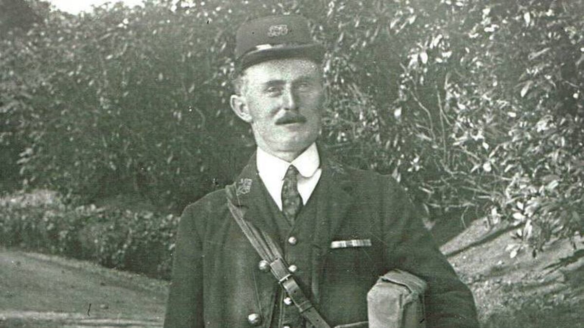 NEW LIFE: James Collins, aka Jeremiah Scully, on his rounds as a postman in Alderley Edge, Cheshire. He had fled his job as postman in Rosscarbery and changed his name to James Collins because he feared for his life during the War of Independence