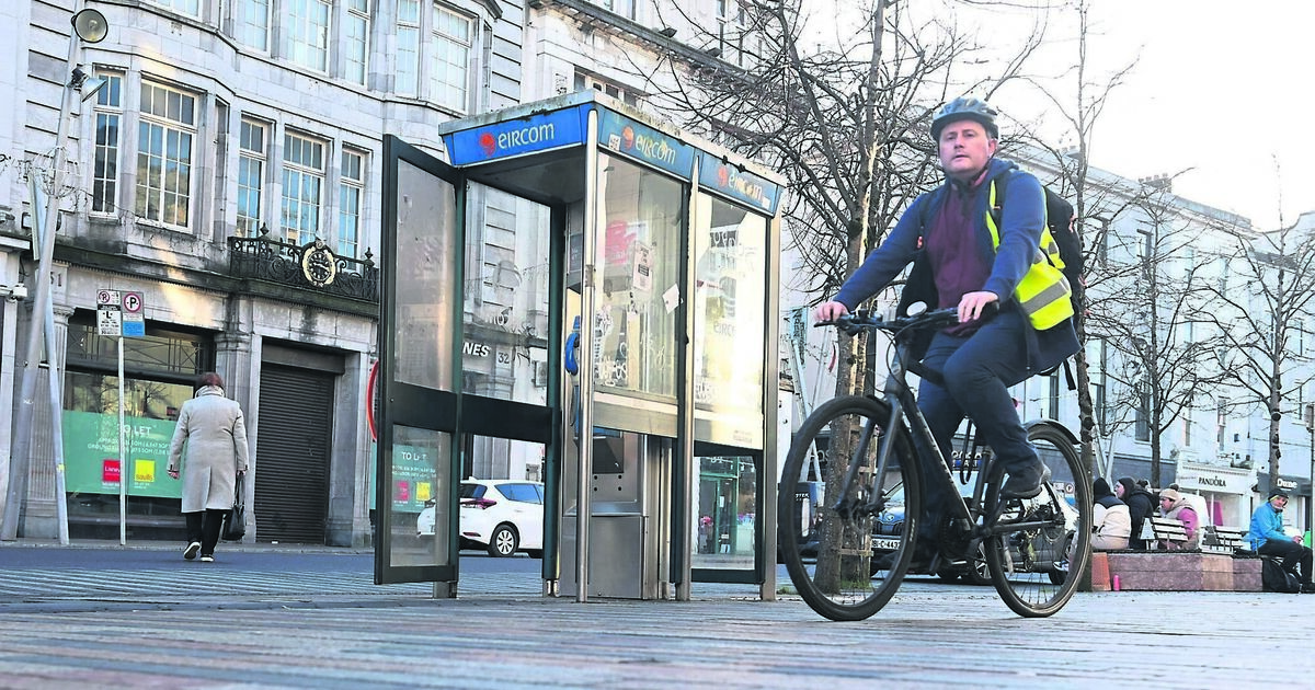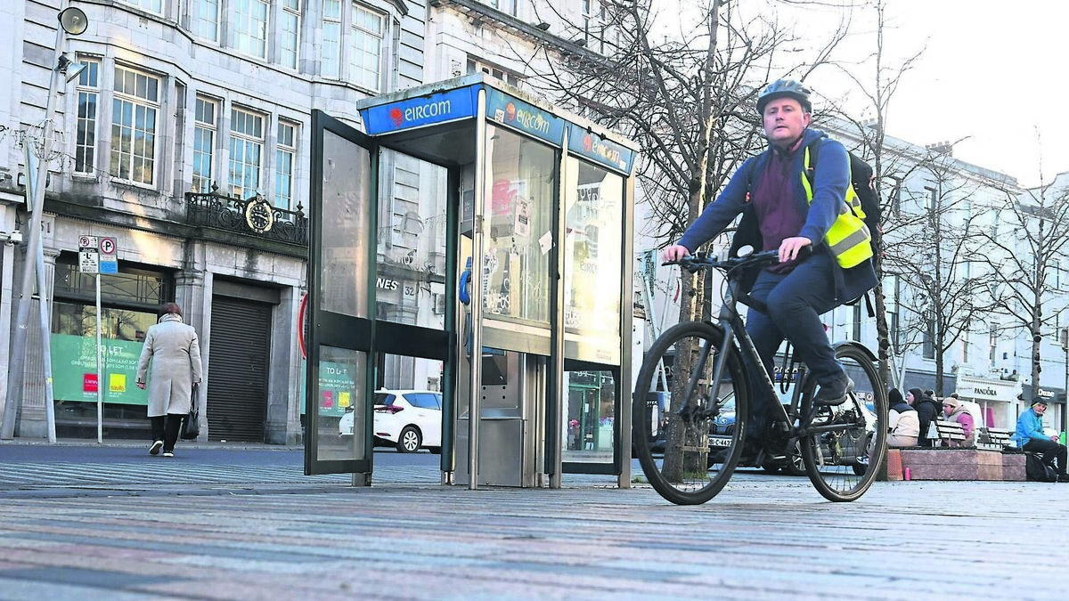Telephone boxes on Patrick Street in Cork city. They used to be hugely important areas of contact, but few of them now remain in the era of the mobile phone. Picture: Larry Cummins