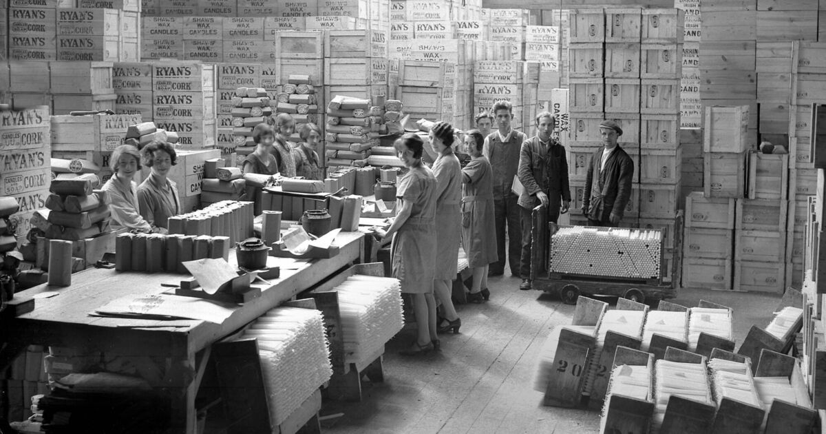 Inside Ryan's soap and candle manufacturers, Pope's Quay in 1929. Tim Cagney's father worked there, and he recalled using their Buttermilk soap.