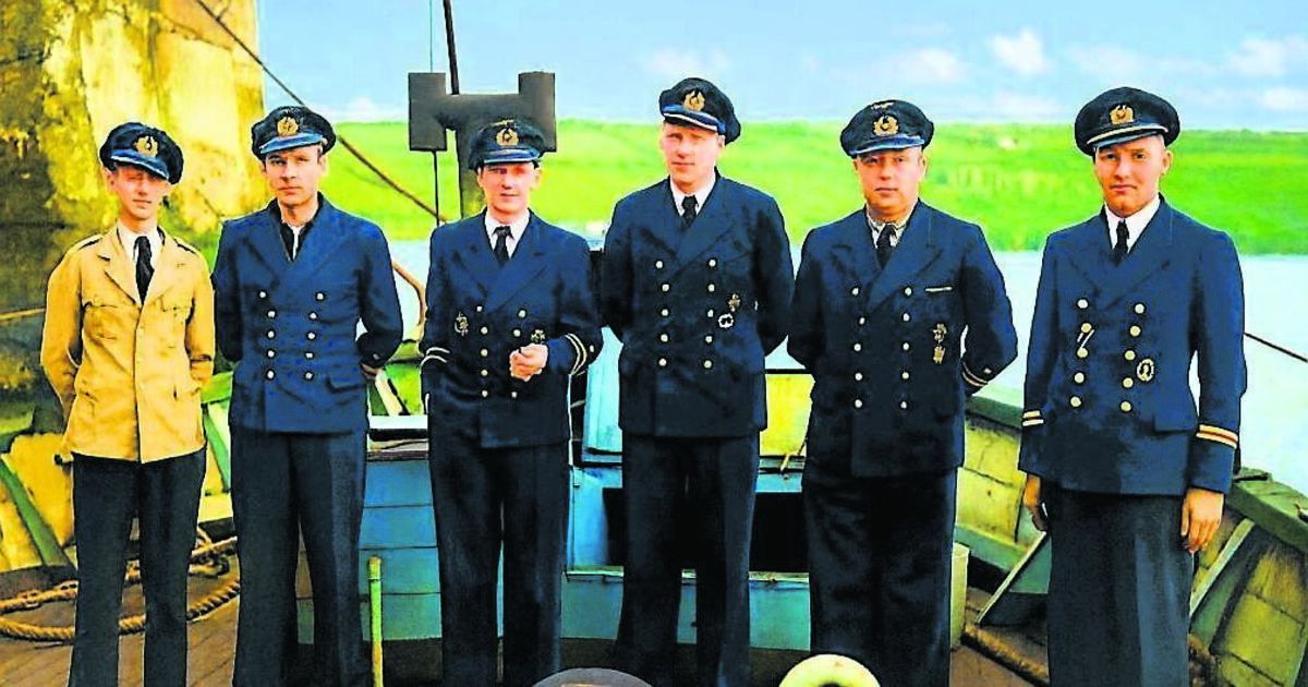 German naval officers at Kinsale in January, 1946. Korvettenkapitän Martin Clemen, the leader of the group, is third from left