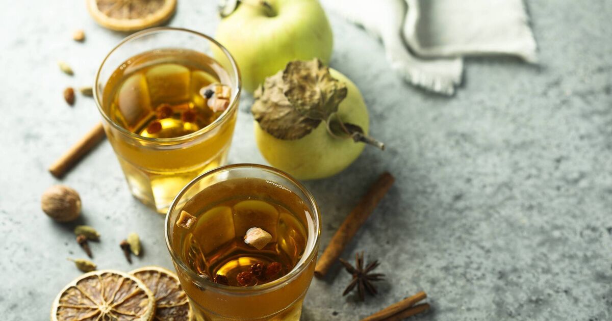 - For one mocktail, half fill a slender tumbler with mulled apple juice and top up with elderflower tonic.