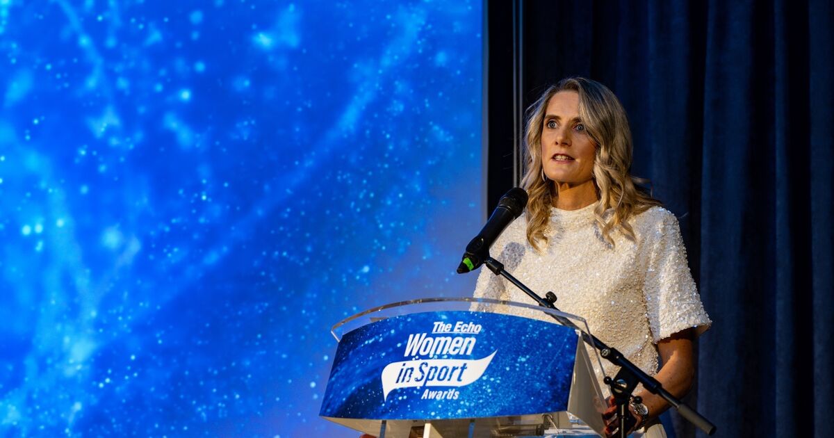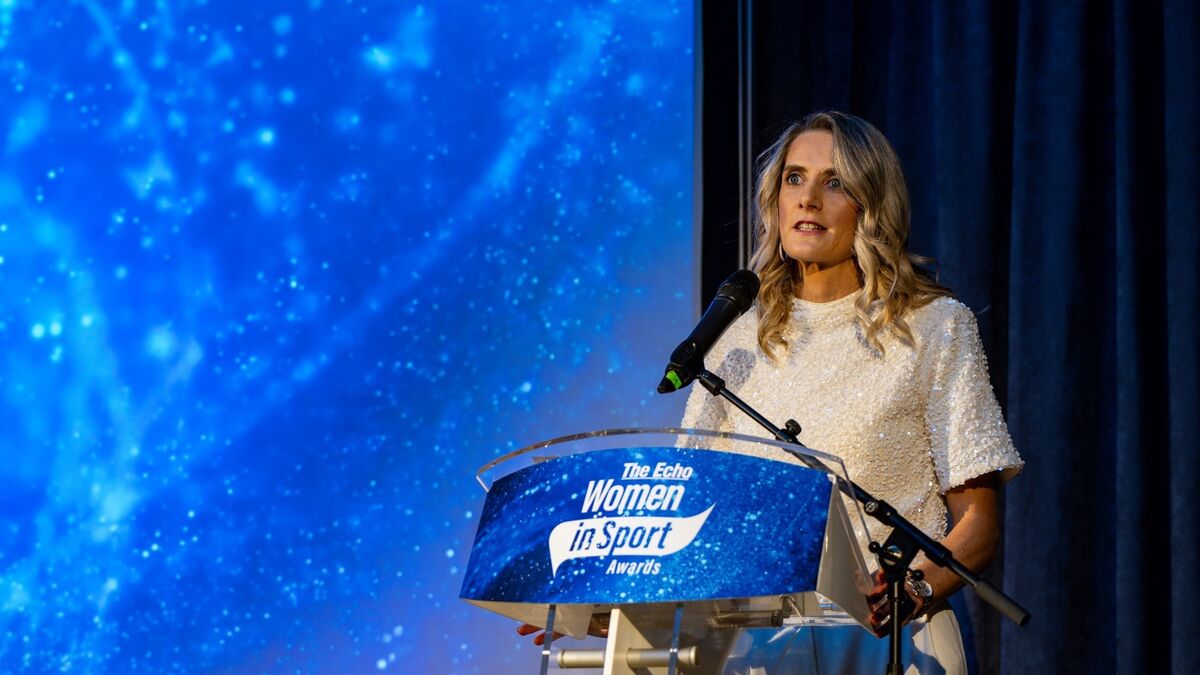 Juliet Murphy giving the keynote speech at the Echo Women in Sports Awards 2025 in the Metropole Hotel. Picture Chani Anderson