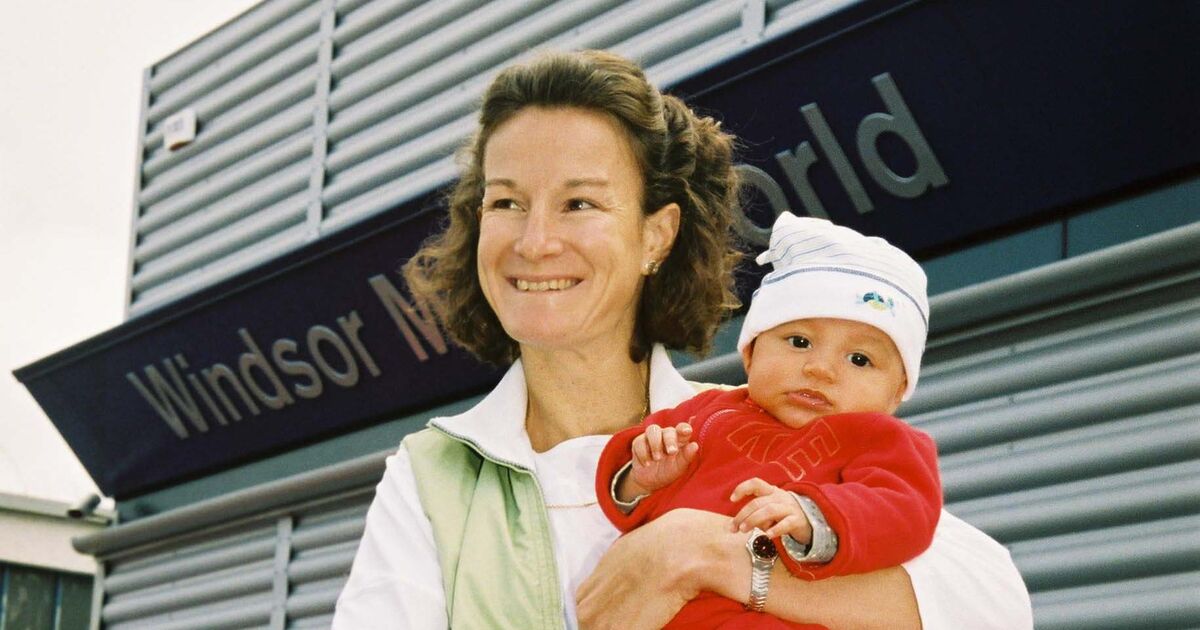 Sonia O’Sullivan at the opening of the Windsor Motorworld on Carrigrohane Road, Cork, pictured with her daughter Sophie when she was just ten weeks old.